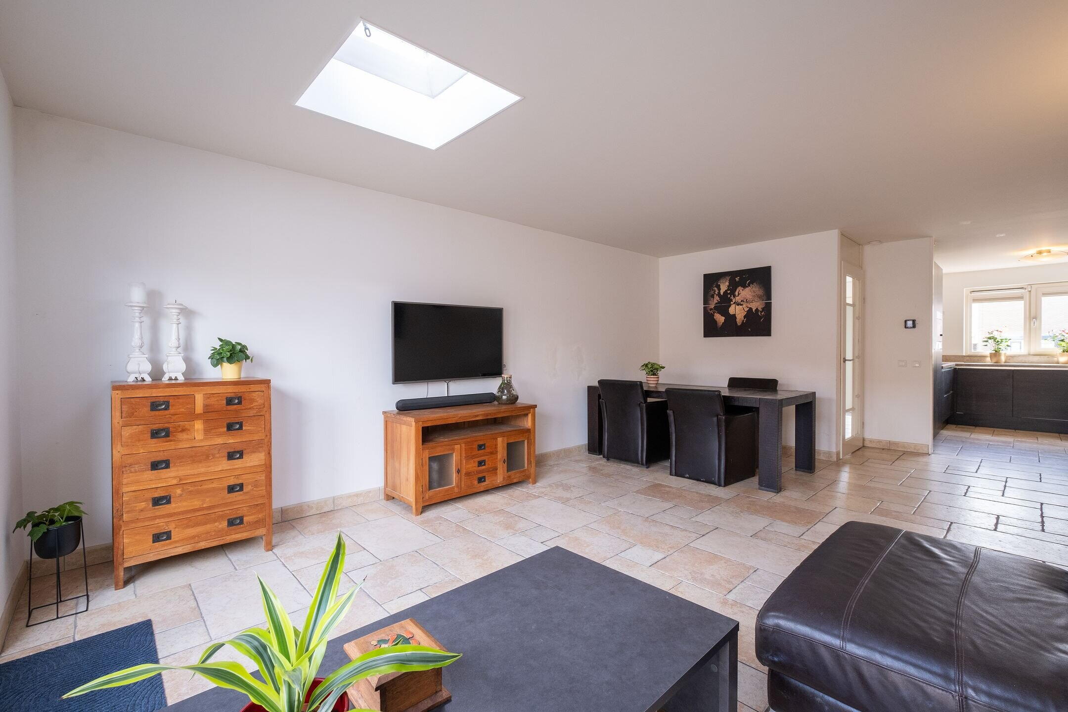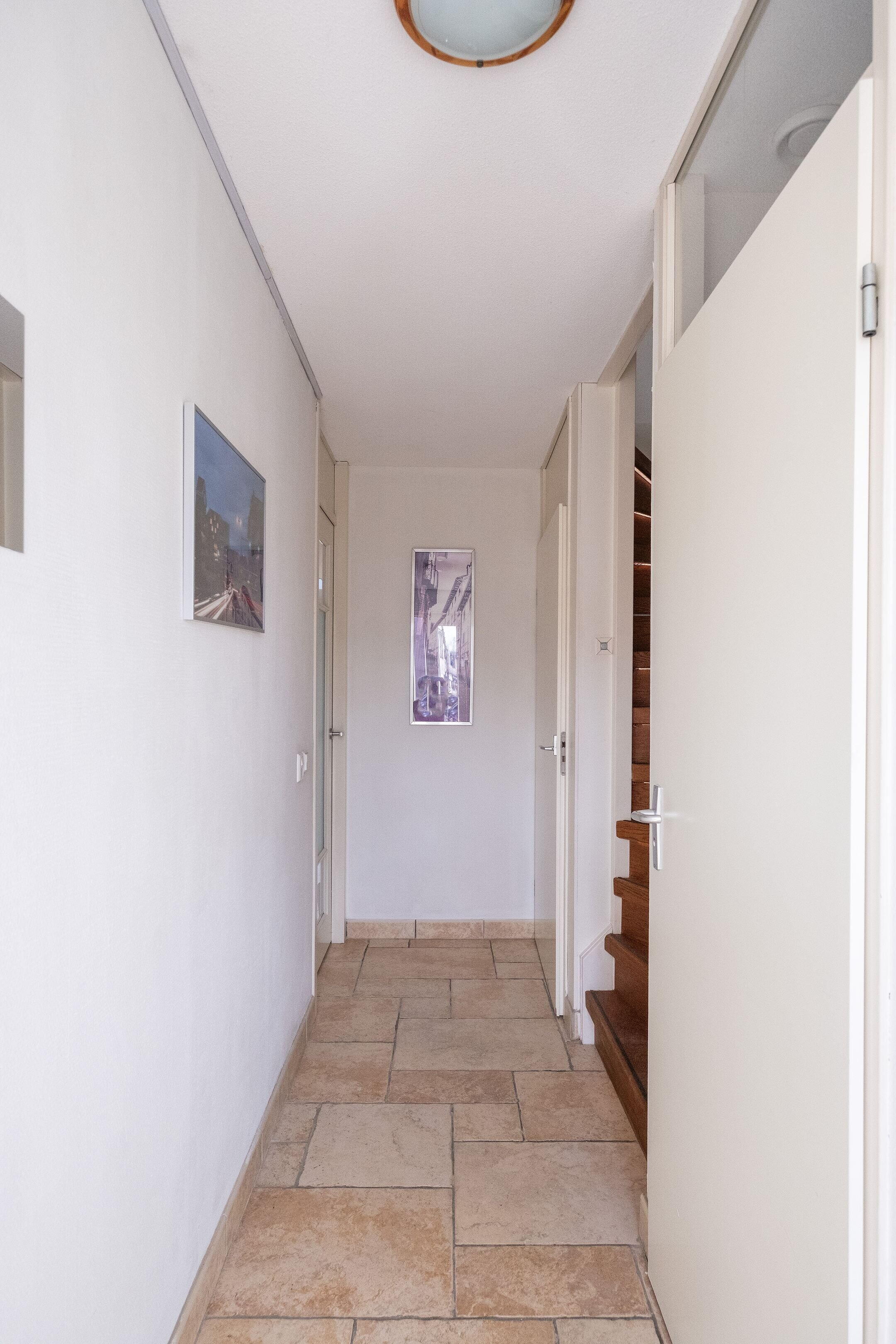 Via de entree kom je in de hal met vernieuwde meterkast (12 groepen en 3 fasen) en trapopgang. De woonkamer is uitgebouwd en opvallend licht dankzij de grote raampartijen, openslaande deuren naar de tuin en de twee lichtkoepels. De tegelvloer met vloerverwarming en de strakke plafonds zorgen voor een verzorgde en comfortabele leefruimte.