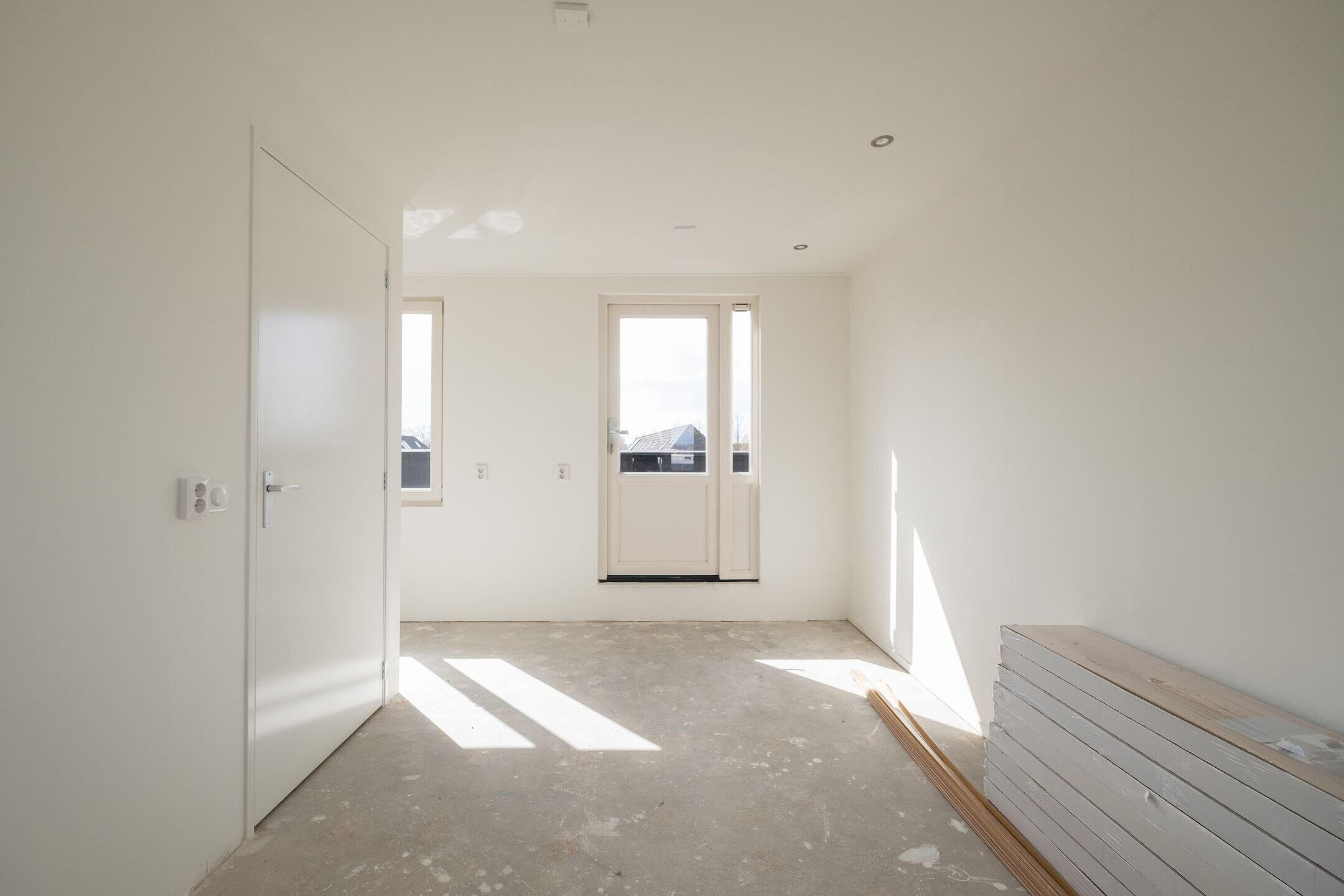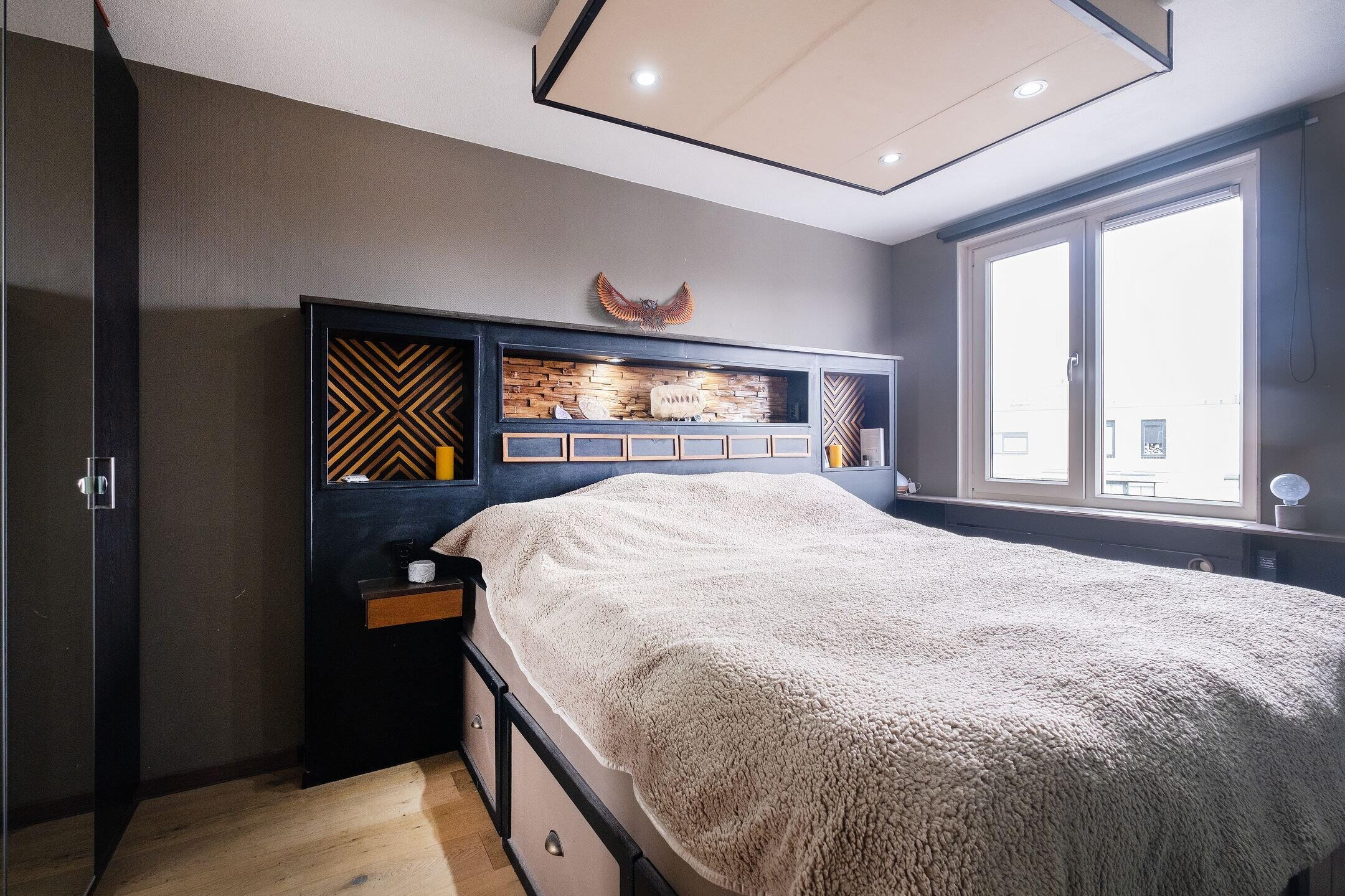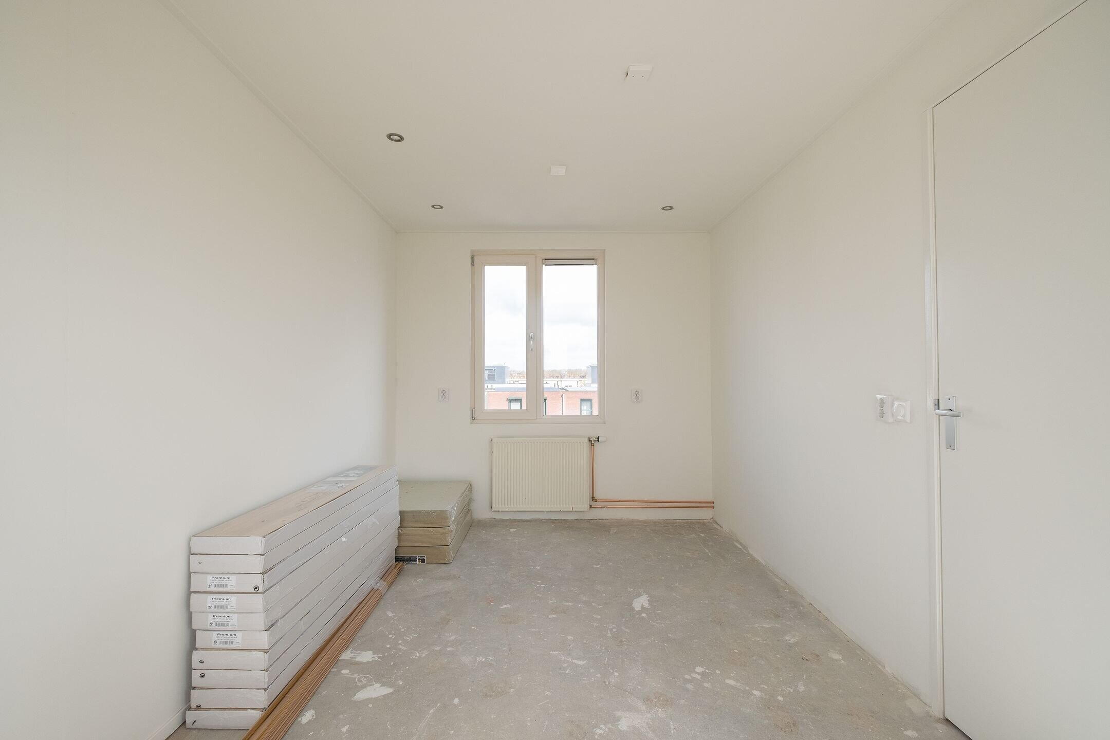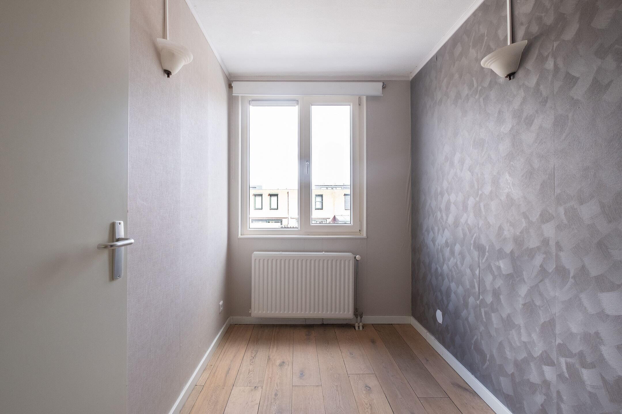 De tweede verdieping biedt een vierde slaapkamer met toegang tot een dakterras, een fijne extra buitenruimte. De kamer is strak afgewerkt met glad gestucte wanden en spotverlichting. Het nieuwe laminaat ligt al klaar voor de nieuwe bewoner.