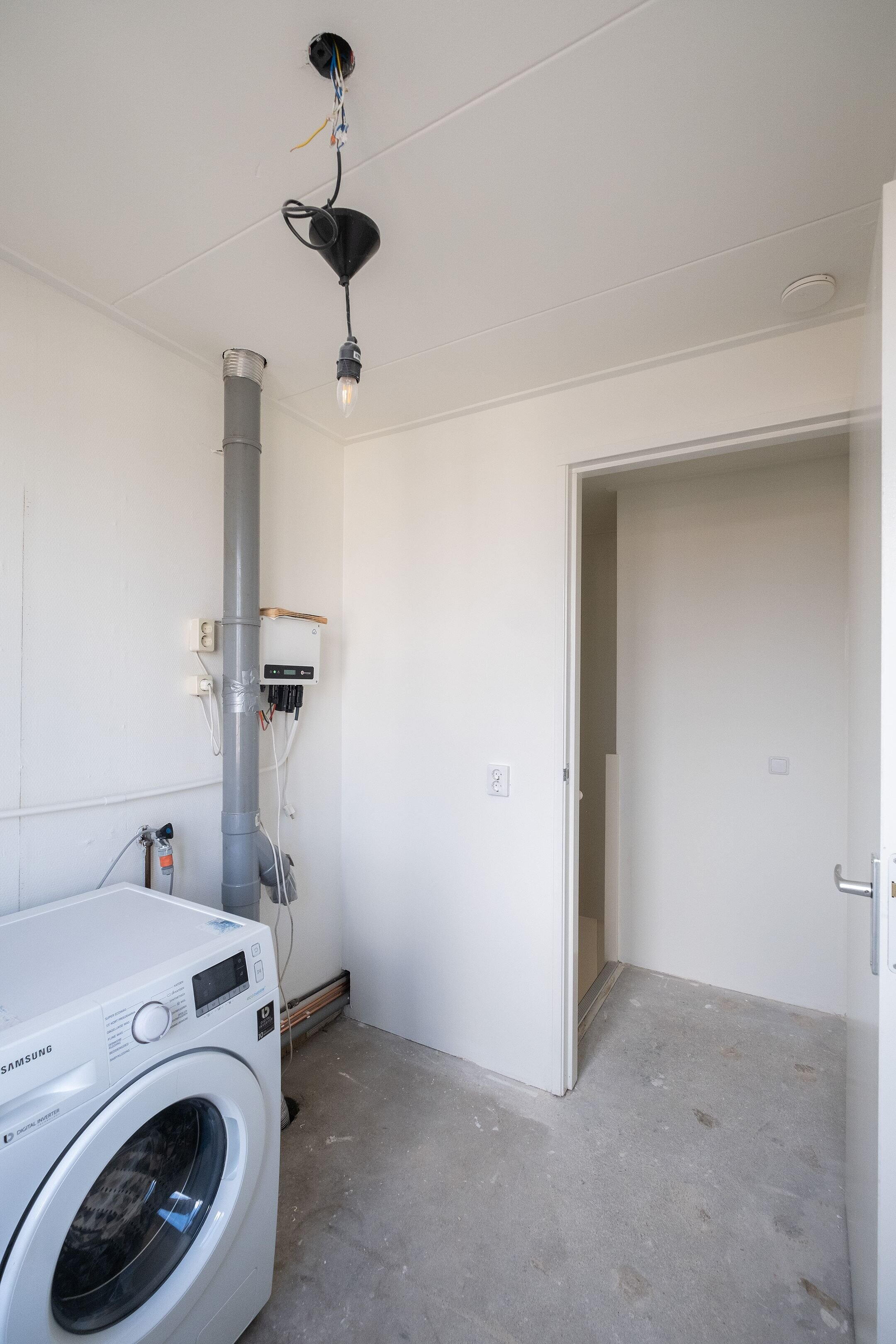 Daarnaast is er een aparte wasruimte aanwezig met aansluitingen voor wasmachine en droger en de omvormer voor de zonnepanelen.