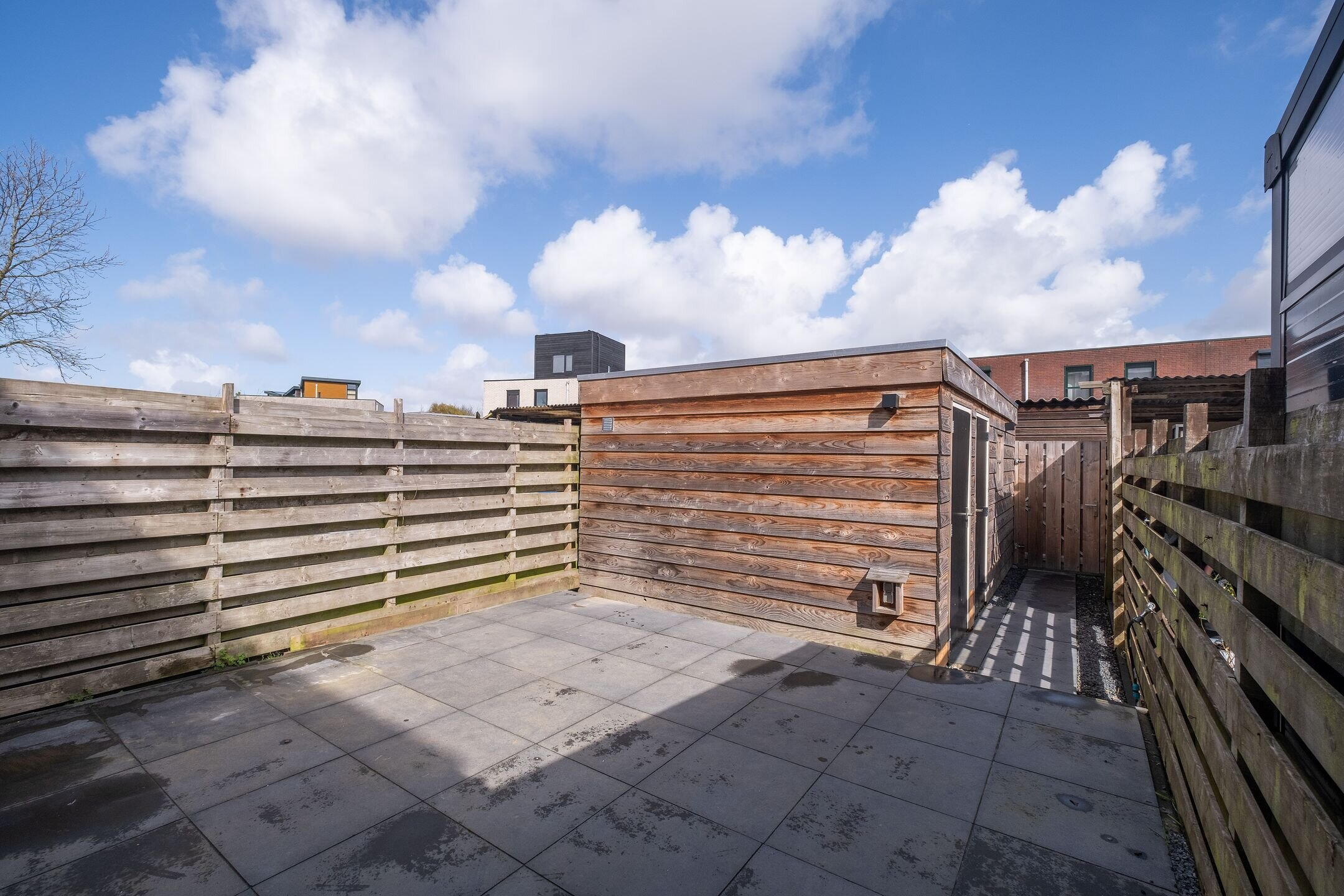 - Achtertuin met royale houten (geïsoleerde) berging en achterom