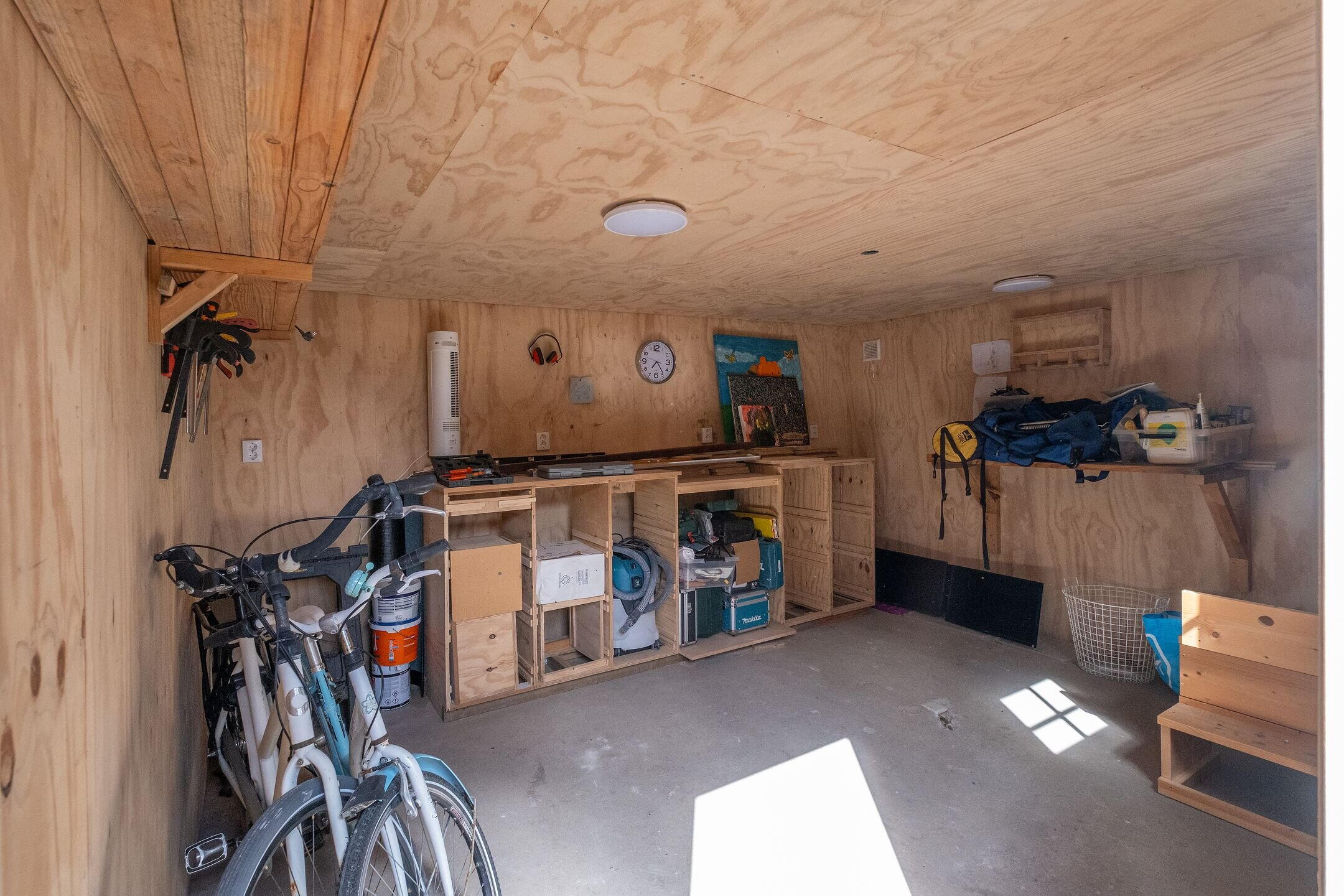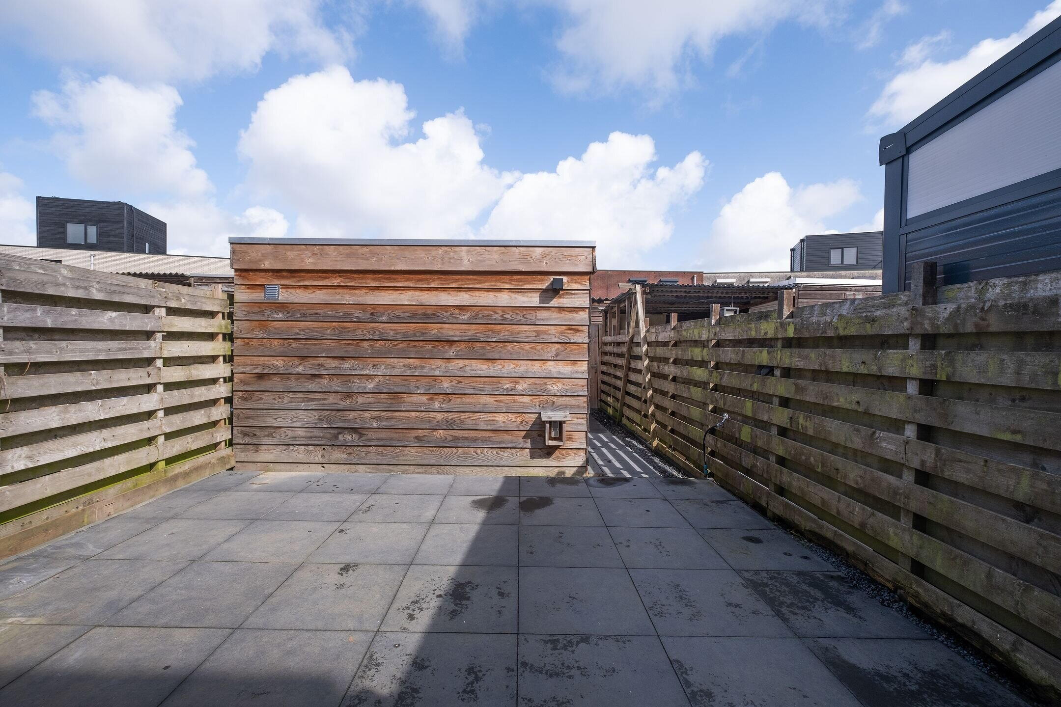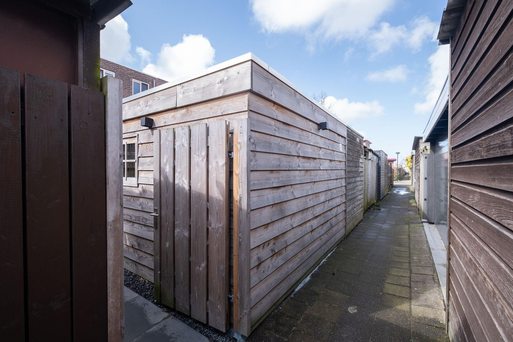De achtertuin ligt op het noordoosten en is circa 11 meter diep. Er ligt een heerlijk terras en de aanwezigheid van twee grote geïsoleerde bergingen (4,3m x 3,33m en 1,31m x 3,33m) is er voldoende ruimte voor een actieve klusser. De bergingen zijn geïsoleerd en voorzien van een betonvloer en elektra. Ideaal voor opslag of hobbyruimte.