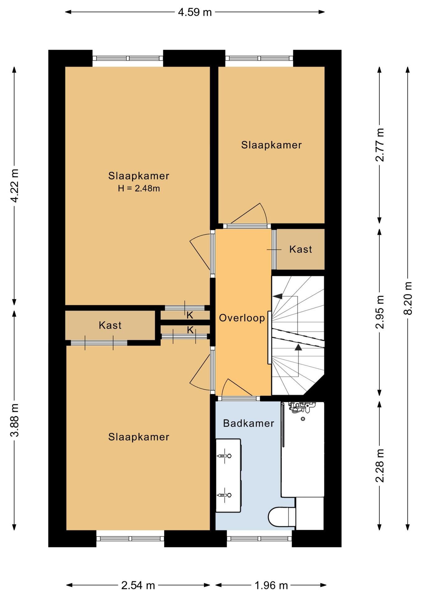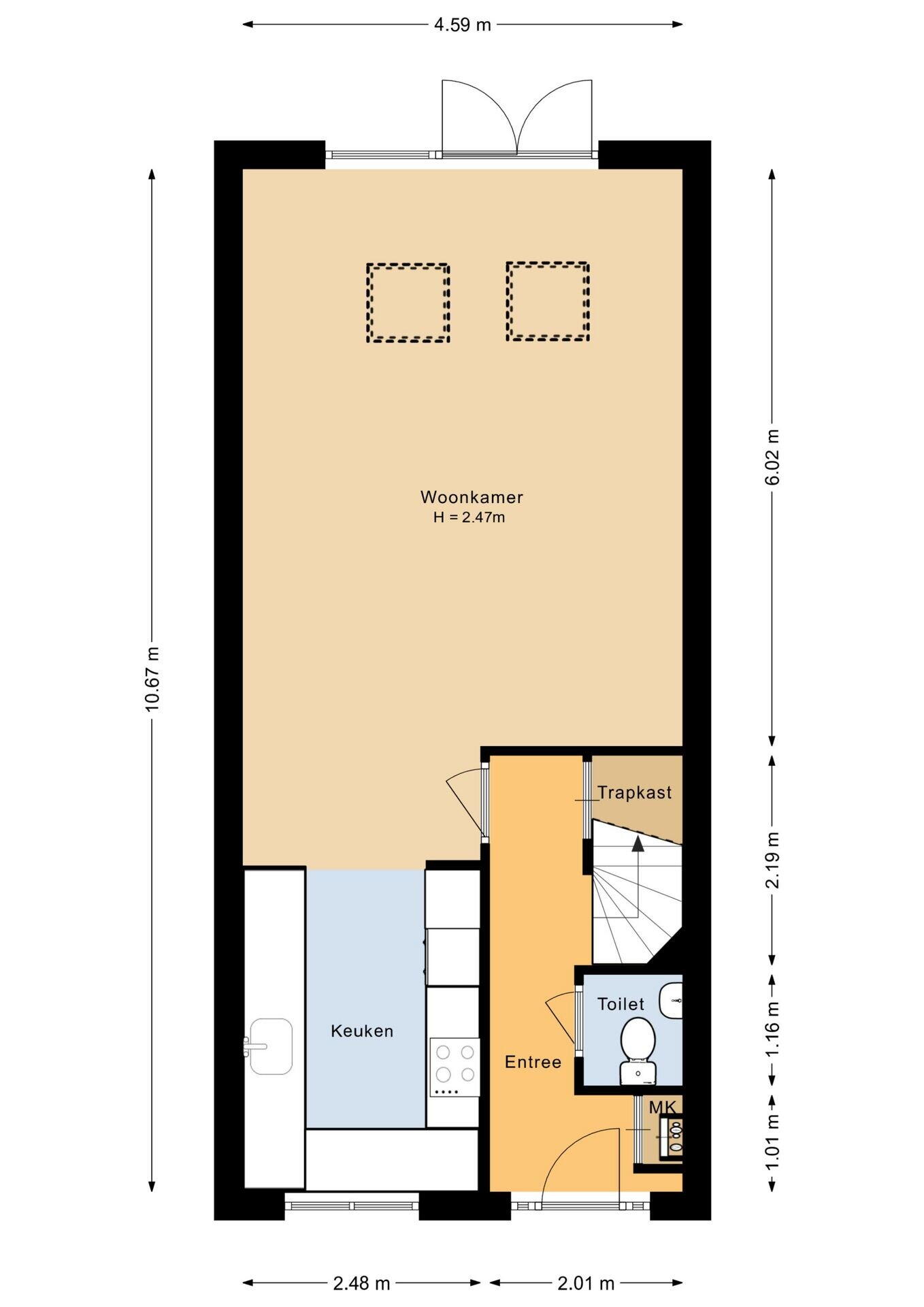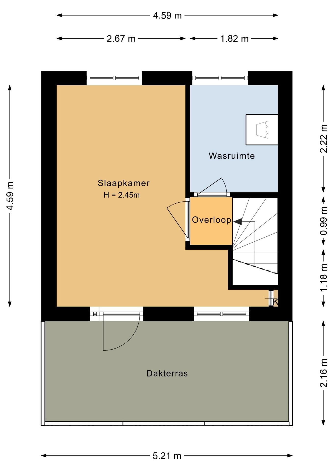 - 51 m² (10,96 meter diep en 4,80 meter breed)