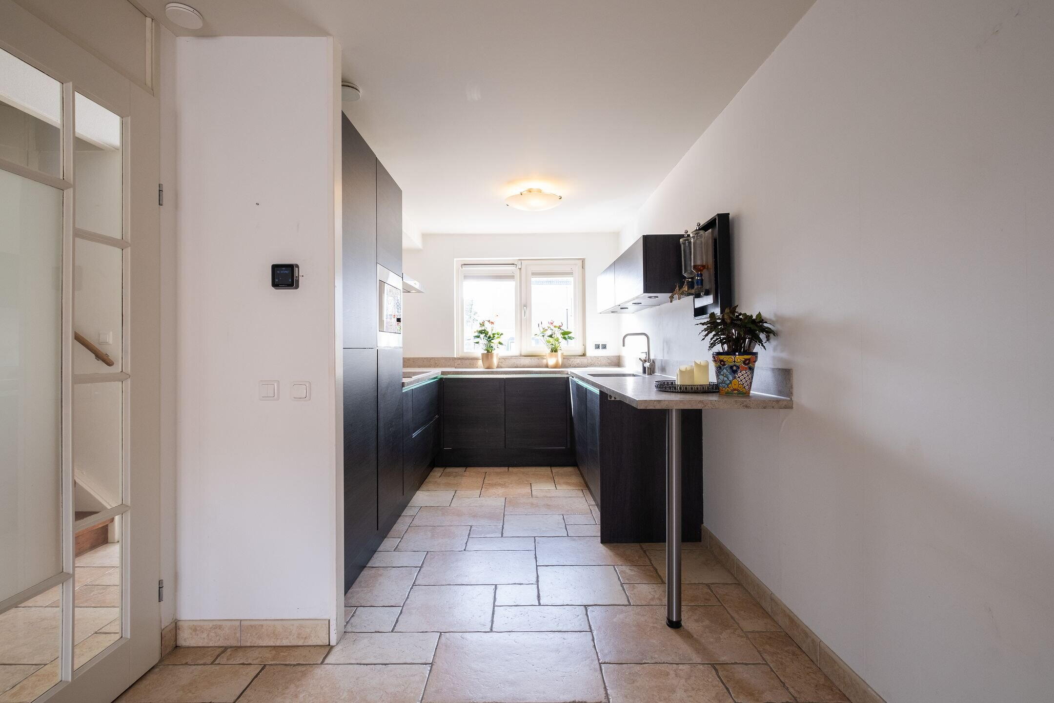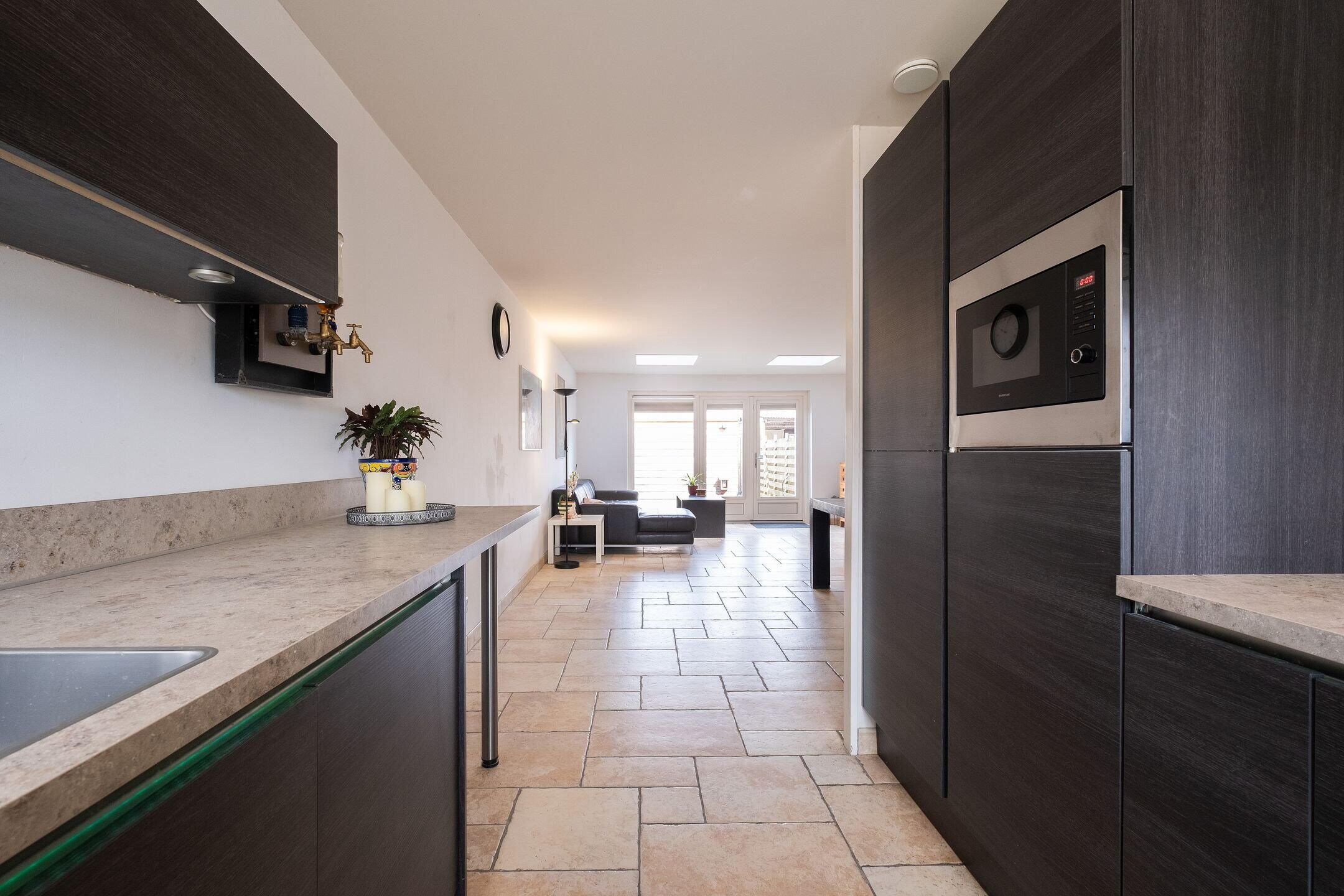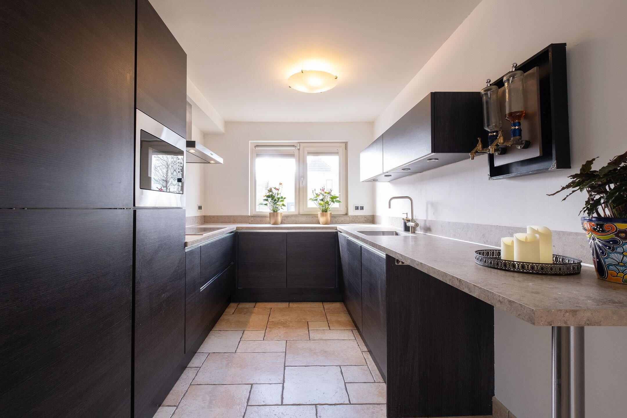 De open keuken is compleet uitgevoerd en voorzien van een 5-zone inductiekookplaat, combimagnetron, grote koelkast, vriezer met 4 laden, vaatwasser, afzuigkap, apothekerskast en een praktische Le Mans draaicarrousel.